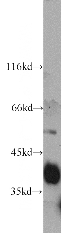 human liver tissue were subjected to SDS PAGE followed by western blot with Catalog No:108226(ASGR1 antibody) at dilution of 1:500