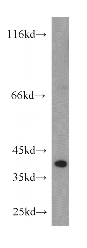 mouse kidney tissue were subjected to SDS PAGE followed by western blot with Catalog No:108295(ATG3 antibody) at dilution of 1:300