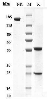 Anti-Complement C5aR1 Antibody (avdoralimab) on SDS-PAGE under reducing (R) condition. The purity of the protein is greater than 95%.