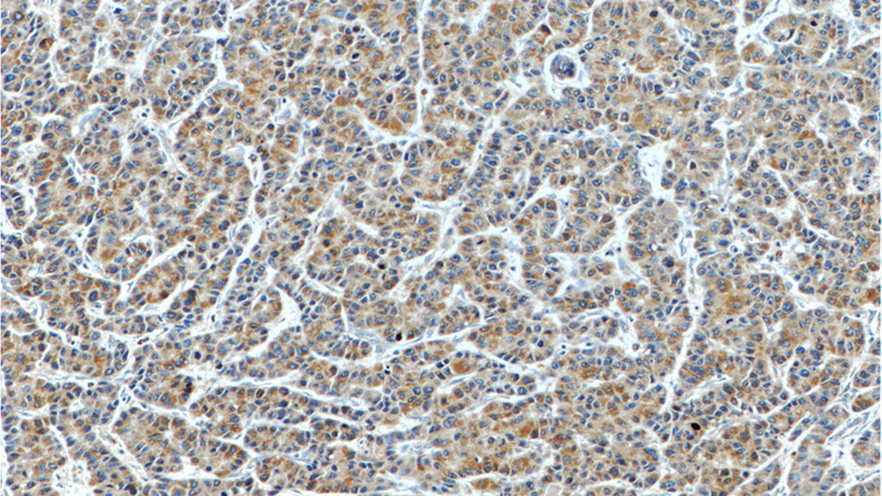 Immunohistochemistry of paraffin-embedded human liver cancer tissue slide using Catalog No:117197(BMP3 Antibody) at dilution of 1:50 (under 10x lens)