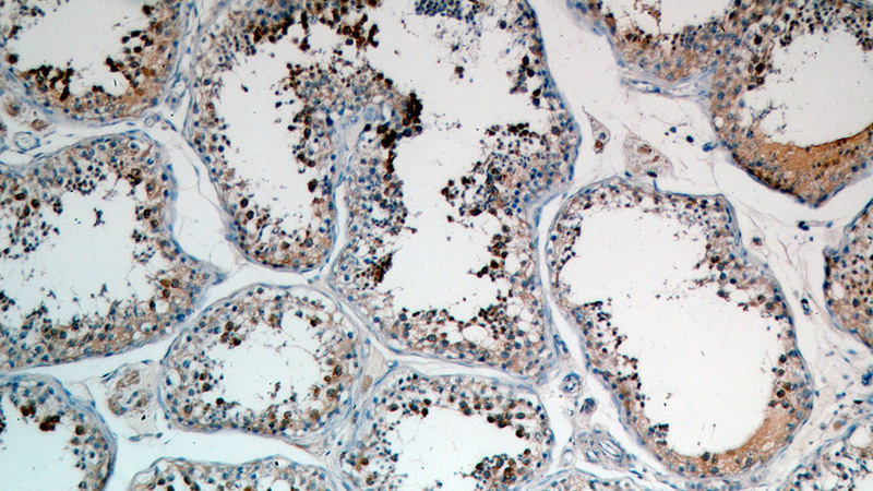 Immunohistochemical of paraffin-embedded human testis using Catalog No:117214(BOLL antibody) at dilution of 1:50 (under 40x lens)