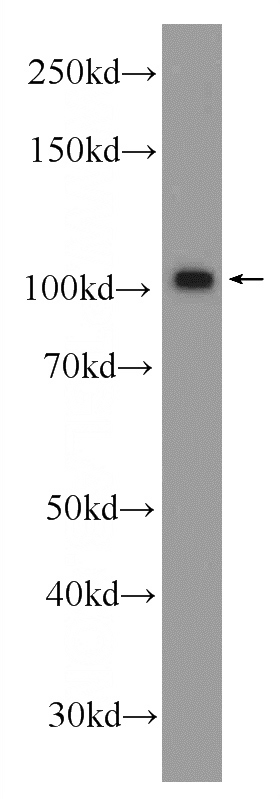 HeLa cells were subjected to SDS PAGE followed by western blot with Catalog No:117223(BRCA1 Antibody) at dilution of 1:1000