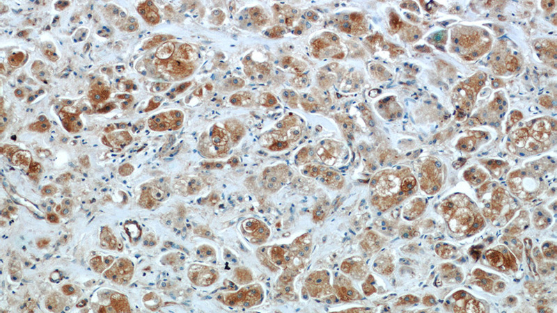 BRCA1, also named as RNF53, plays a central role in DNA repair by facilitating cellular response to DNA repair. It is required for appropriate cell cycle arrests after ionizing irradiation in both the S-phase and the G2 phase of the cell cycle. The BRCA1-BARD1 heterodimer coordinates a diverse range of cellular pathways such as DNA damage repair, ubiquitination and transcriptional regulation to maintain genomic stability. BRCA1 acts by mediating ubiquitin E3 ligase activity that is required for its tumor suppressor function. It is involved in transcriptional regulation of P21 in response to DNA damage. BRCA1 is required for FANCD2 targeting to sites of DNA damage. It may function as a transcriptional regulator. BRCA1 inhibits lipid synthesis by binding to inactive phosphorylated ACACA and preventing its dephosphorylation. The antibody is specific to BRCA1.