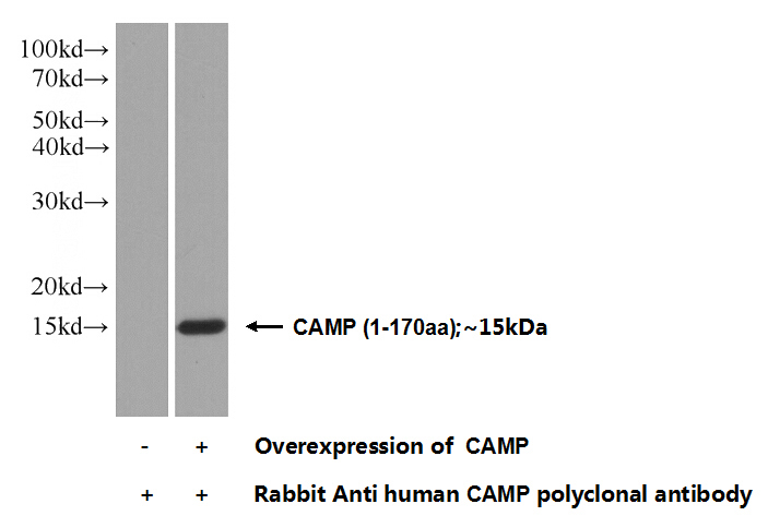 This antibody was obtained by immunization of CAMP recombinant protein (Accession Number: NM_004345). Purification method: Antigen affinity purified.