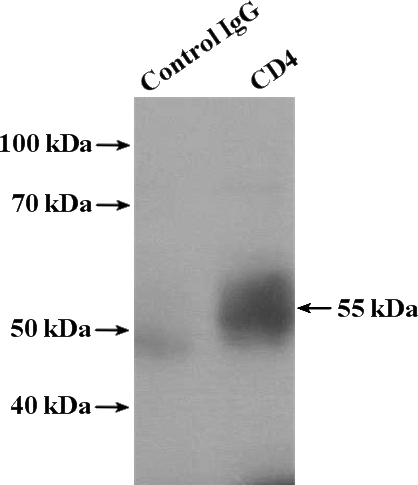 CD4 Rabbit Polyclonal antibody. Positive IP detected in mouse thymus tissue. Positive WB detected in mouse thymus tissue. Observed molecular weight by Western-blot: 55 kDa