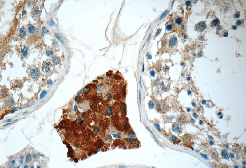 Immunohistochemistry of paraffin-embedded human testis tissue slide using Catalog No:109231(CHMP1A Antibody) at dilution of 1:50 (under 40x lens)