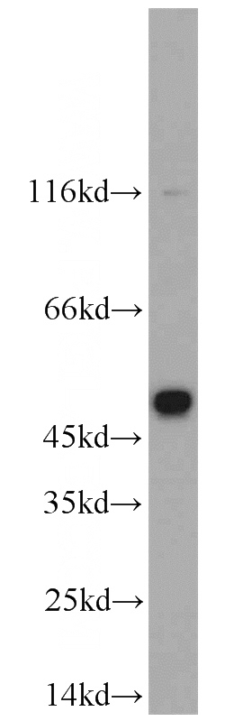 SH-SY5Y cells were subjected to SDS PAGE followed by western blot with Catalog No:109286(CHRNB4 antibody) at dilution of 1:2000