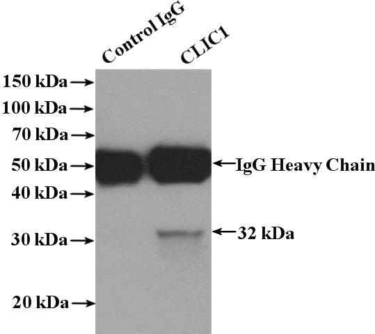 IP Result of anti-CLIC1 (IP:Catalog No:109388, 4ug; Detection:Catalog No:109388 1:300) with HeLa cells lysate 1200ug.