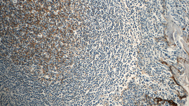 Immunohistochemistry of paraffin-embedded human tonsillitis tissue slide using Catalog No:109410(CLU Antibody) at dilution of 1:50 (under 40x lens)
