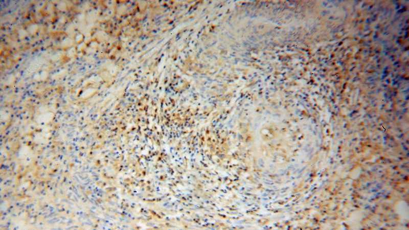 Immunohistochemical of paraffin-embedded human cervical cancer using Catalog No:109365(CFL1 antibody) at dilution of 1:50 (under 10x lens)