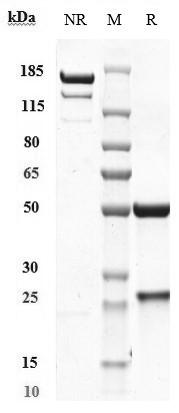 Anti-B7-H1 / PD-L1 / CD274 Antibody (cosibelimab) on SDS-PAGE under reducing (R) condition. The purity of the protein is greater than 95%.