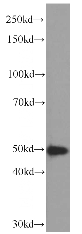 Jurkat cells were subjected to SDS PAGE followed by western blot with Catalog No:107179(CSK antibody) at dilution of 1:1000