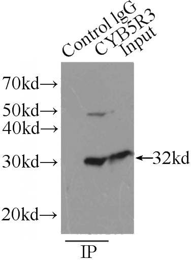 IP Result of anti-CYB5R3 (IP:Catalog No:109657, 3ug; Detection:Catalog No:109657 1:1000) with HepG2 cells lysate 6000ug.