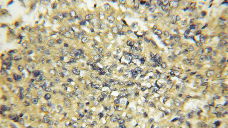 Immunohistochemical of paraffin-embedded human lung cancer using Catalog No:109657(CYB5R3 antibody) at dilution of 1:50 (under 10x lens)