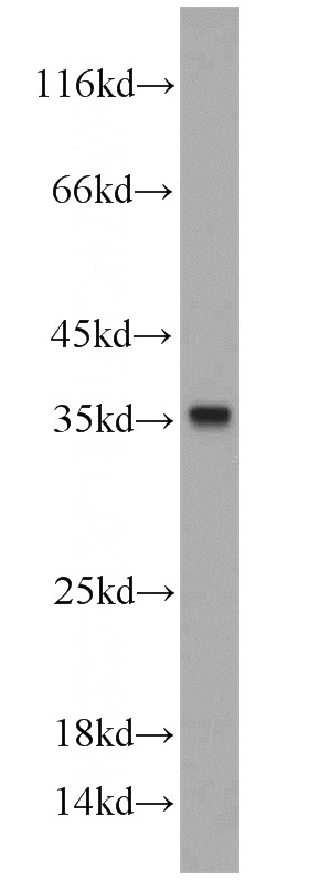 HepG2 cells were subjected to SDS PAGE followed by western blot with Catalog No:109657(CYB5R3 antibody) at dilution of 1:1000