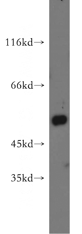 mouse lung tissue were subjected to SDS PAGE followed by western blot with Catalog No:109695(CYP2F1 antibody) at dilution of 1:500