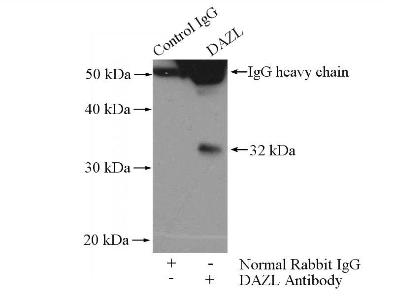 IP Result of anti-DAZL (IP:Catalog No:109874, 4ug; Detection:Catalog No:109874 1:500) with mouse testis tissue lysate 4400ug.