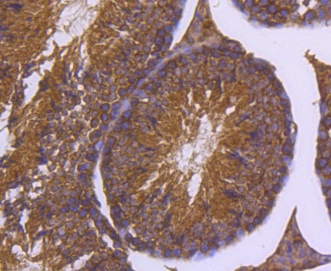 Immunohistochemistry of paraffin-embedded mouse testis using DNAJC15 antibody at dilution of 1:100 (40x lens).