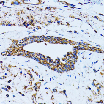 Immunohistochemistry of paraffin-embedded human breast cancer using EIF2AK4 antibody at dilution of 1:100 (40x lens).