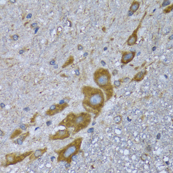 Immunohistochemistry of paraffin-embedded mouse brain using EIF2AK4 antibody at dilution of 1:100 (40x lens).