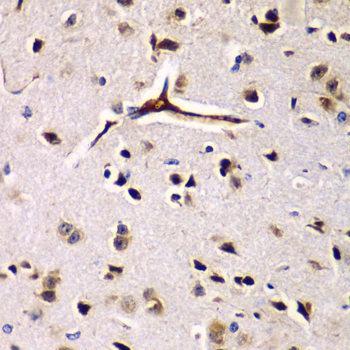 Immunohistochemistry of paraffin-embedded rat brain using EIF2AK4 antibody at dilution of 1:100 (40x lens).