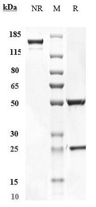 Anti-AXL / UFO Antibody (enapotamab) on SDS-PAGE under reducing (R) condition. The purity of the protein is greater than 95%.