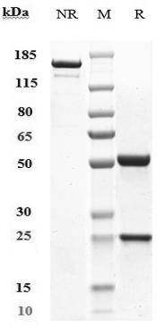 Anti-B7-H3 / CD276 Antibody (enoblituzumab) on SDS-PAGE under reducing (R) condition. The purity of the protein is greater than 95%.