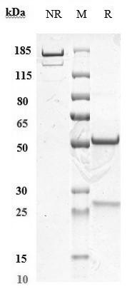 Anti-CD38 Antibody (felzartamab) on SDS-PAGE under reducing (R) condition. The purity of the protein is greater than 95%.