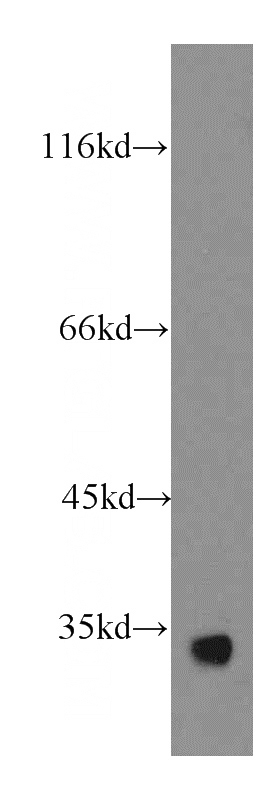human heart tissue were subjected to SDS PAGE followed by western blot with Catalog No:110779(FRZB antibody) at dilution of 1:1500