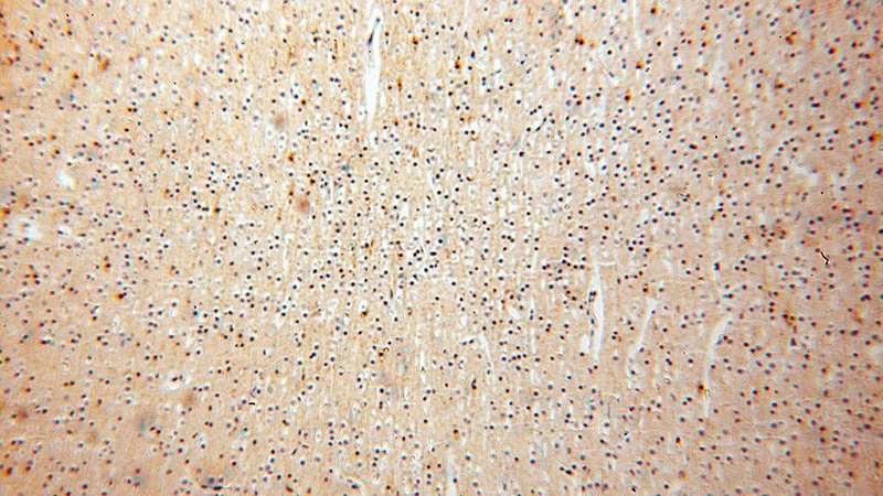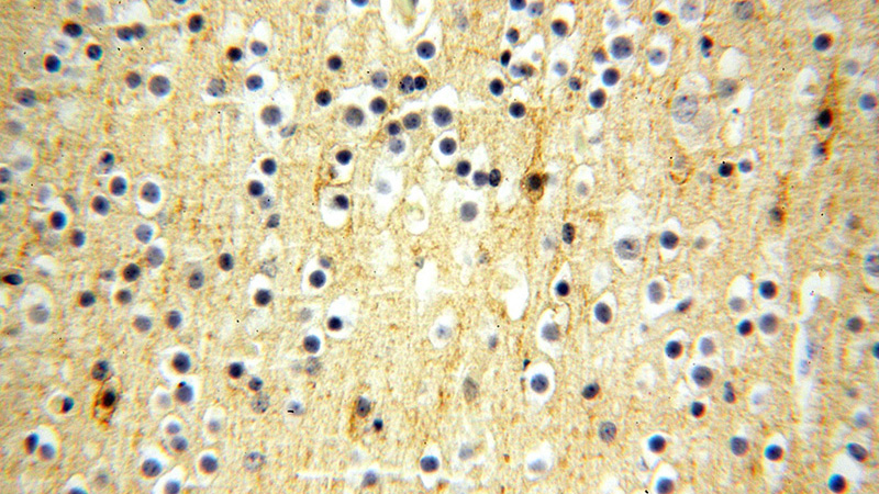 Immunohistochemical of paraffin-embedded human brain using Catalog No:110757(FXYD6 antibody) at dilution of 1:100 (under 10x lens)