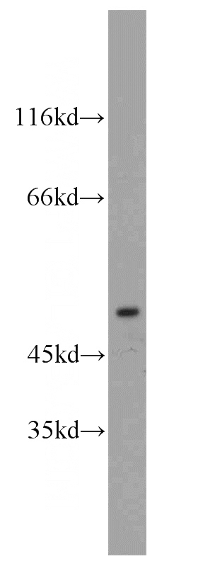 mouse brain tissue were subjected to SDS PAGE followed by western blot with Catalog No:110807(GABRA1 antibody) at dilution of 1:1000