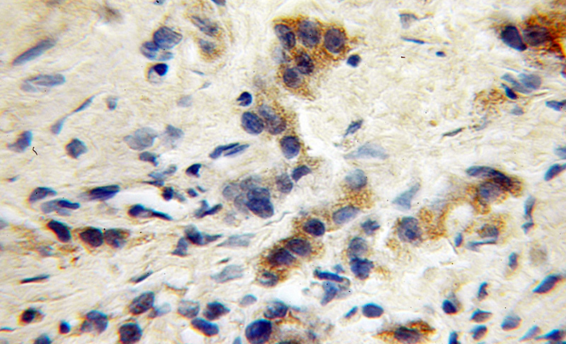 Immunohistochemical of paraffin-embedded human gliomas using Catalog No:110812(GABRG1 antibody) at dilution of 1:100 (under 40x lens)
