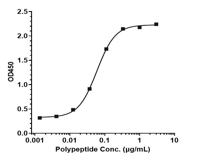 Immobilized Aβ40 at 8 ug/mL can bind Anti-Amyloid Beta Antibody (gantenerumab), EC50=0.05944 ug/mL.