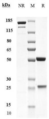 Anti-F12 / Factor XII Antibody (garadacimab) on SDS-PAGE under reducing (R) condition. The purity of the protein is greater than 95%.