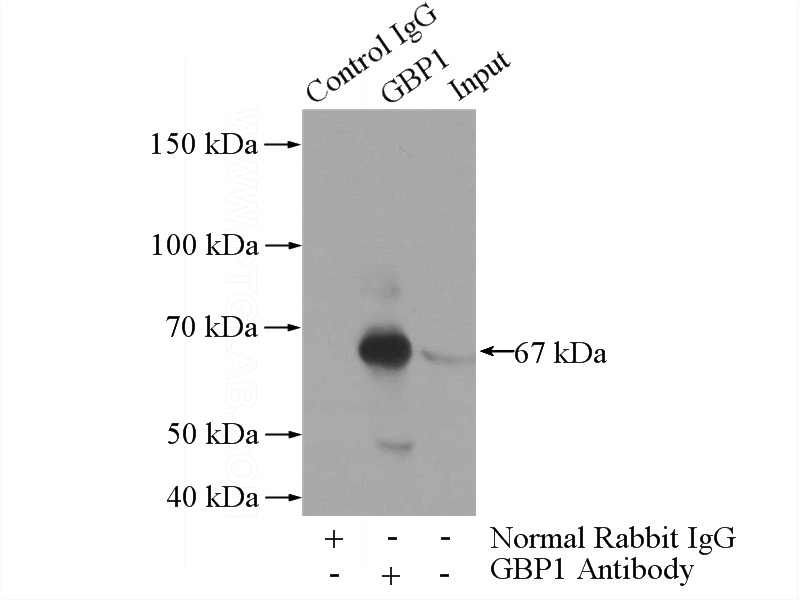 IP Result of anti-GBP1 (IP:Catalog No:110891, 4ug; Detection:Catalog No:110891 1:600) with human placenta tissue lysate 4000ug.