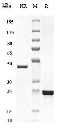 Anti-GP6 / Glycoprotein-6 Antibody (glenzocimab) on SDS-PAGE under reducing (R) condition. The purity of the protein is greater than 90%.