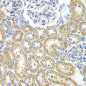 Immunohistochemistry of paraffin-embedded rat kidney using GNAI2 antibody at dilution of 1:100 (40x lens).