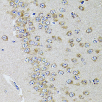 Immunohistochemistry of paraffin-embedded rat brain using GRIN2A antibody at dilution of 1:100 (40x lens).