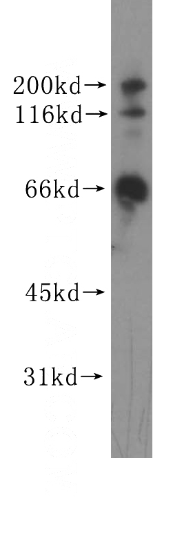 HEK-293 cells were subjected to SDS PAGE followed by western blot with Catalog No:111215(GRK6 antibody) at dilution of 1:500