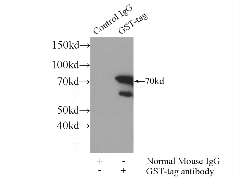 GST tag Mouse Monoclonal antibody. Positive WB detected in recombinant protein. Positive IP detected in Recombinant protein protein.