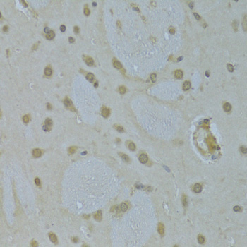 Immunohistochemistry of paraffin-embedded rat brain using HNRNPK Antibody at dilution of 1:200 (40x lens).