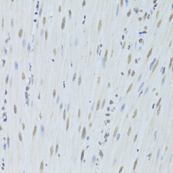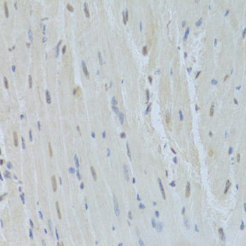 Immunohistochemistry of paraffin-embedded mouse heart using HNRNPK Antibody at dilution of 1:100 (40x lens).