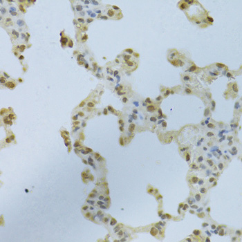 Immunohistochemistry of paraffin-embedded rat lung using HNRNPK Antibody at dilution of 1:100 (40x lens).