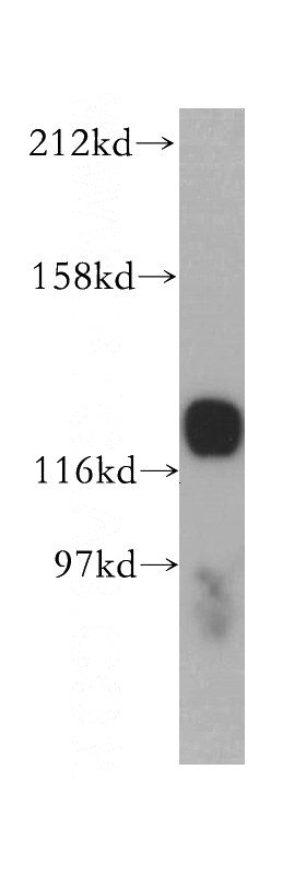 Jurkat cells were subjected to SDS PAGE followed by western blot with Catalog No:111512(HNRNPU antibody) at dilution of 1:500