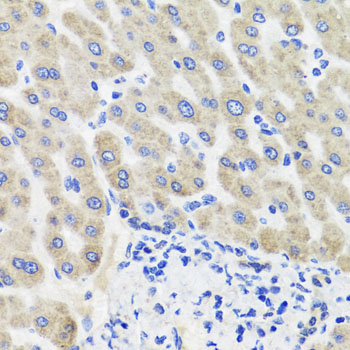 Immunohistochemistry of paraffin-embedded human liver injury using HSD11B2 antibody at dilution of 1:100 (40x lens).