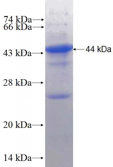 75%, by SDS-PAGE with Coomassie Brilliant Blue staining.