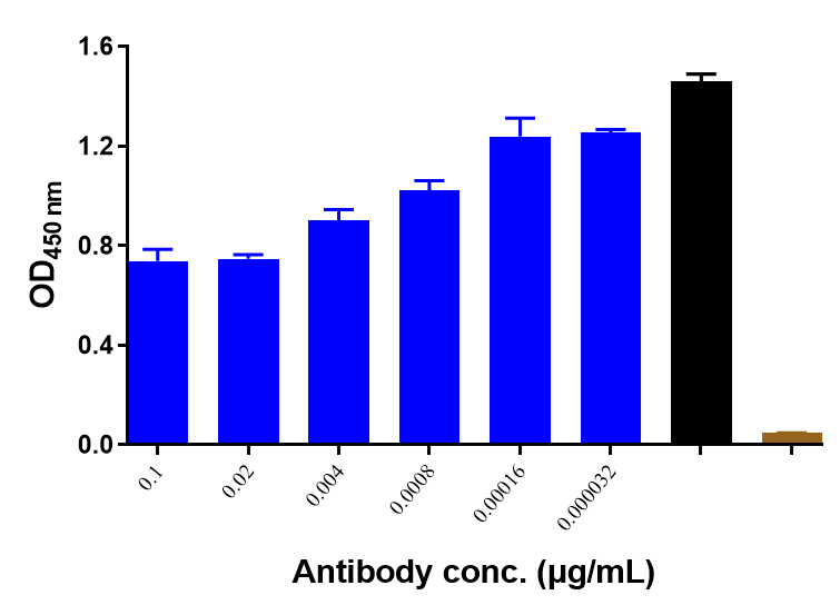 Human CD4 CHO cells were stained with Anti-CD4 Antibody (ibalizumab) and negative control protein respectively, washed and then followed by PE and analyzed with FACS, EC50=0.16 ug/mL.