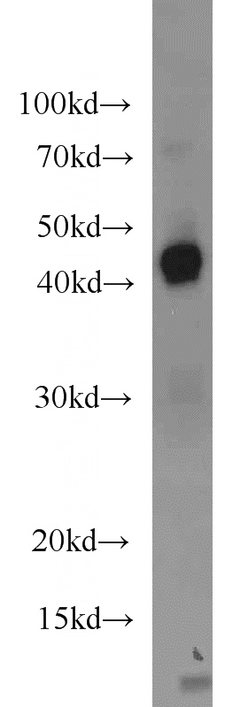 human placenta tissue were subjected to SDS PAGE followed by western blot with Catalog No:111610(IDO1 antibody) at dilution of 1:1000