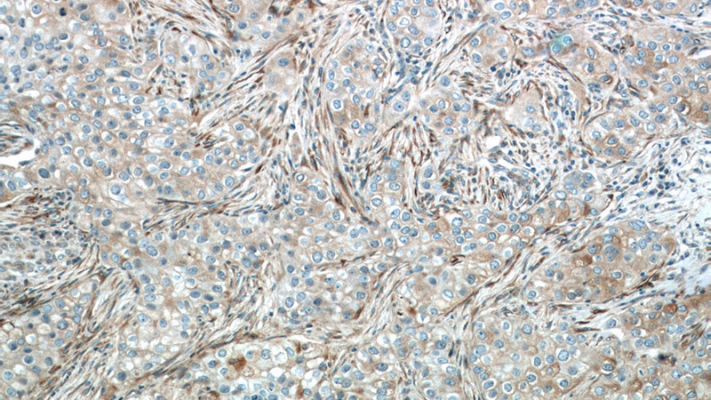 Immunohistochemistry of paraffin-embedded human breast cancer slide using Catalog No:111617(IFIT1 Antibody) at dilution of 1:50