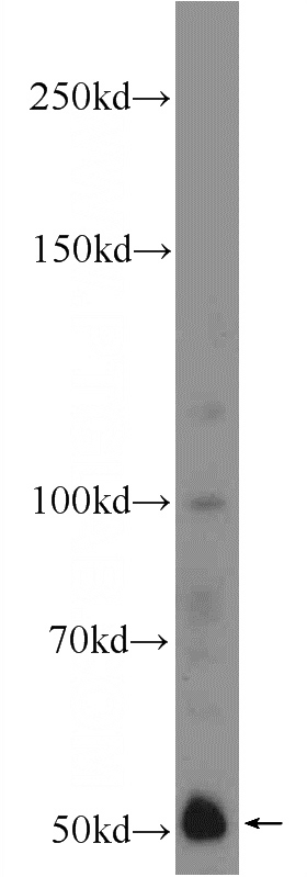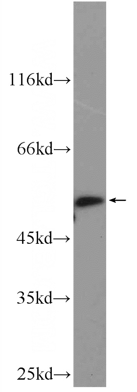 U-937 cells were subjected to SDS PAGE followed by western blot with Catalog No:111617(IFIT1 Antibody) at dilution of 1:600